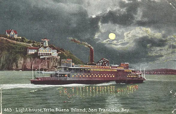 当时的方案是借着薄荷岛的水下浅滩和岩石扩建伸展出去,建好的金银道是为了在岛上举办金门国际博览会。当时的美国正处于西部大开发阶段,金门世界博览会GGIE的筹划可以说是美国国家发展战略的一次励精图治的拥抱亚太政策的起步。彼时的世界中心还是处于欧洲,当时的纽约世界博览会给人的感觉是一次国际化的博览会,而金门博览会给人的观感却是一次充满了太平洋岛国和东亚诸国的异国风情秀。那时的亚太地区还没有进入西方的公共视野,而正是这个博览会,成为了金银岛不到百年的历史中的最最高光时刻。