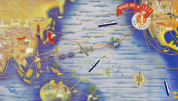 泛美航空的Cliper 快船号是一架横跨太平洋的长距离商用载客飞机,内部构造相当奢华。飞机使用特殊航空燃料,在太平洋上跳岛飞行,晚上加油白天飞行,一路停靠:夏威夷,中途岛,威克岛,关岛,马尼拉最终到达香港,那时被视为进入中国的大门。