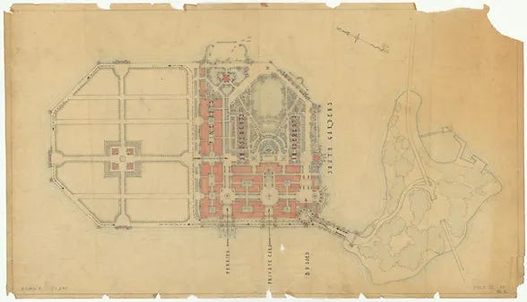 可是后来事情好像没有那么容易,于是出现了第二章规划图:“我们依然可以在岛上用一半的面积建机场,一半的面积保留博览会的园林建筑和景观:P ”