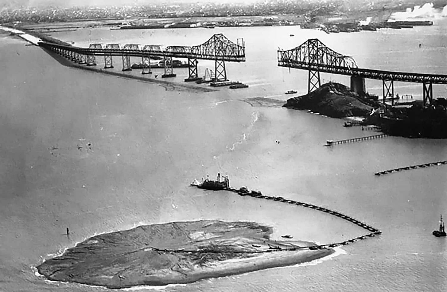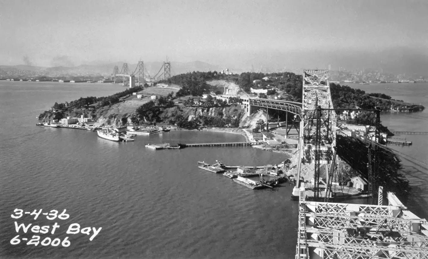 1934年后,海湾大桥还没有修好,当时的旧金山市长说服了罗斯福总统,由联邦出资建造金银岛。当时的军方高层也很支持,因为看中了小岛的地理位置和军事潜力。1936年初,陆军工程兵出工花了22个月就把这个小岛建成,可以看到当时美军的效率惊人。