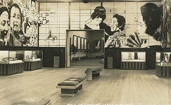 正在试图构建大东亚共荣圈的日本政府当时花重金建造了昂贵且精致的场馆,还送出了许多精美的丝绸制的纪念品给游客,或许是为了炫富,或许是为了美化自己作为侵略者的国际形象。当时的东南亚诸国还处在殖民统治的阴影之中,例如当时的法属印度支那(今越南)也建造了一栋安南风格的二层小楼,展示了中南半岛山地部落和下游发达城市的自然艺术品,手工艺品和商品。