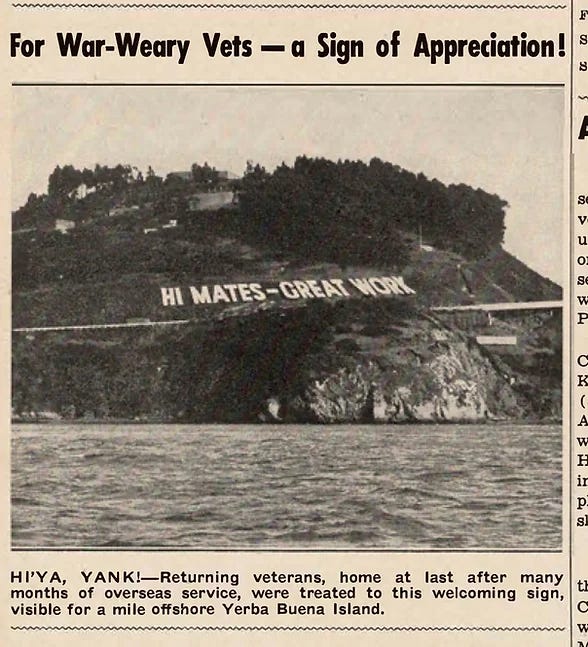 欢迎水兵们凯旋的标语,这或许是太平洋战场归来的军人重回美国本土前映入眼帘的第一句话